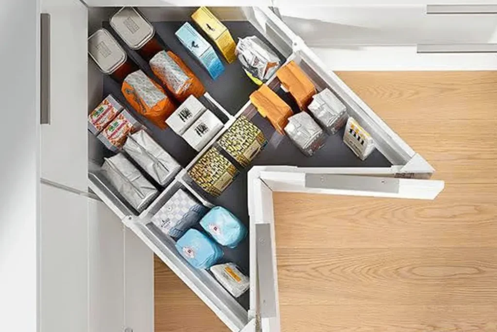 Em muitos projetos, algumas peças ficam à mostra, bem à vista. A ideia é simples: tudo no lugar certo, na hora certa. A empresa austríaca Blum, por exemplo, é referência em ferragens e organizadores para cozinha. Os produtos deles são de altíssima qualidade e valorizam muito os móveis onde são usados.