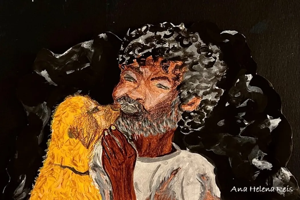 Ilustração de Ana Helena Reis feita em aquarela e lápis aquarelado sobre papel Etival preto