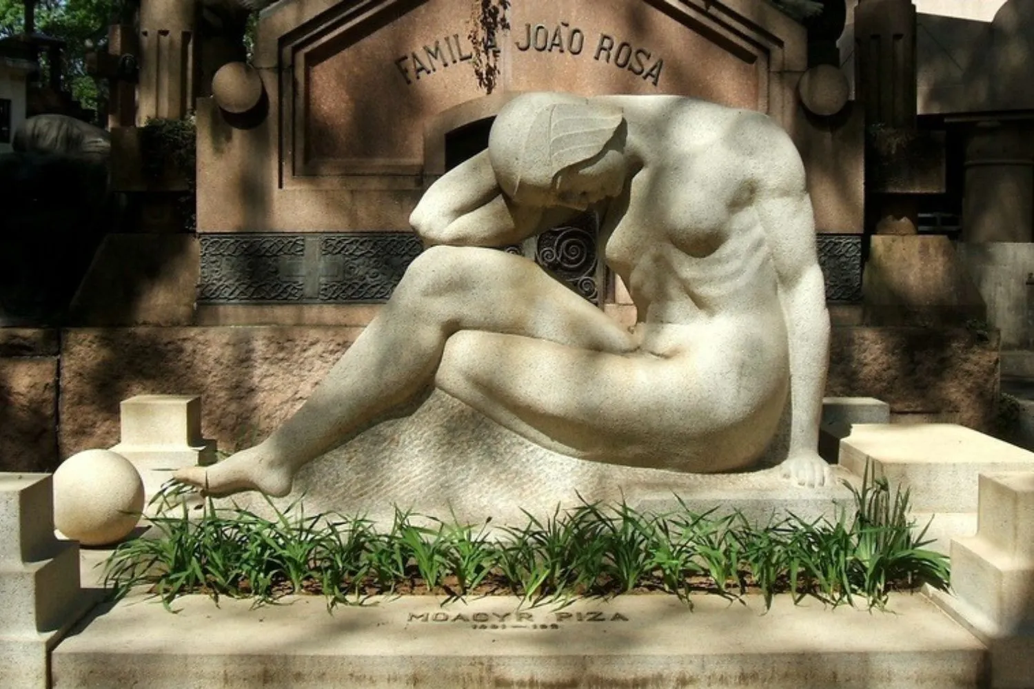 Ali estava a representação de uma mulher nua, entalhada em mármore branco, com o pescoço levemente inclinado em direção aos joelhos; aos seus pés jazia uma esfera também esculpida em mármore. Intencionalmente, a postura da beldade evocava o formato de um ponto de Interrogação – nome que o artista Francisco Leopoldo e Silva escolheu para a obra. Tratava-se do túmulo do respeitado advogado Moacyr Toledo Piza, que, segundo a versão amplamente divulgada, assassinara a cortesã conhecida como Nenê Romano, uma mulher que despertou a paixão e a cobiça de muitos homens.