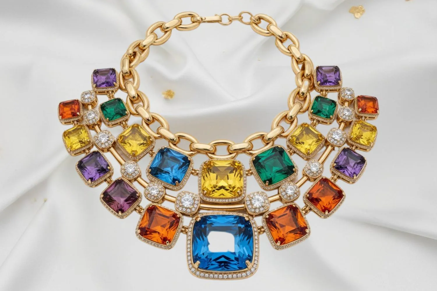 Com cerca de 350 obras-primasque atravessam décadas de criação, a mostra propõe uma imersão no universo cromático da Bvlgari. Desde os icônicos colares de rubis e esmeraldas até as ousadas combinações de ametistas, turquesas e citrinos, cada peça expressa o fascínio da maison pela cor como elemento de identidade.