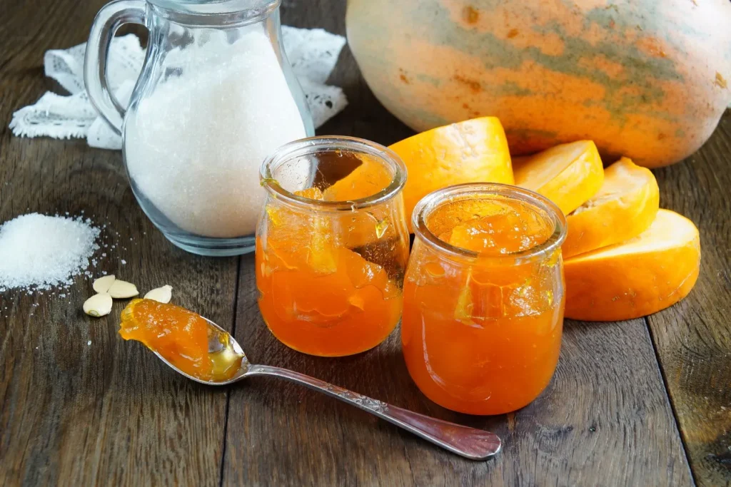 Modo de preparo: descasque e corte a abóbora em cubos pequenos e coloque para cozinhar com água em uma panela até que esteja lá dentro; descarte a água e coloque o suco de laranja, açúcar e as especiarias e deixe cozinhar em fogo baixo até que a abóbora esteja se desmanchando.