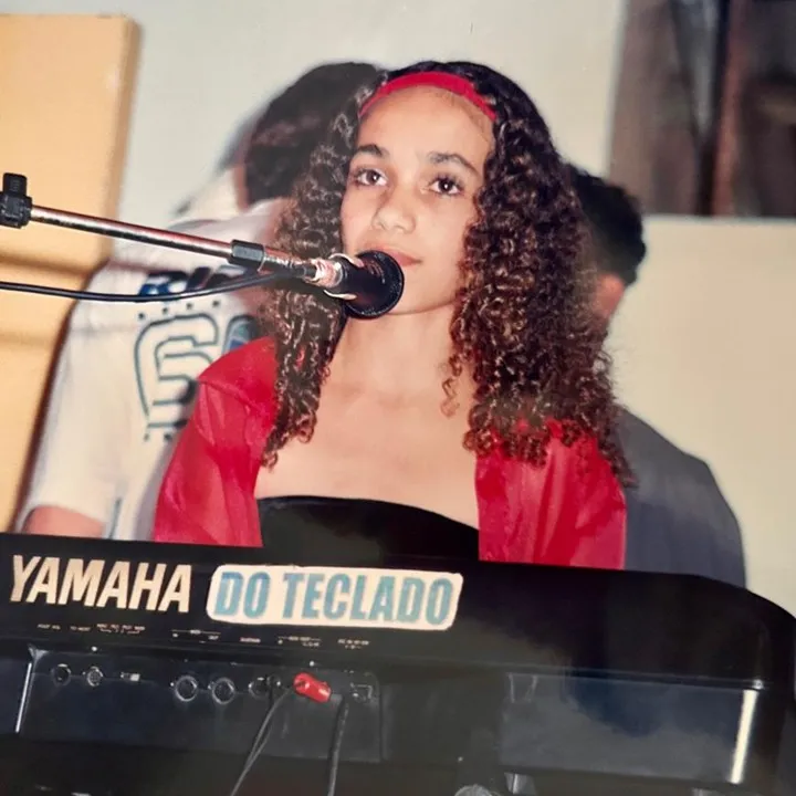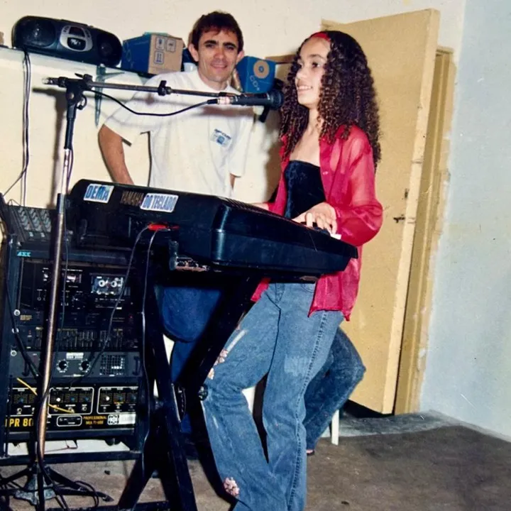 Diana’s musical journey began long before she took the lead at the keyboards. Her father, Valdemar—better known as “Dema dos Teclados,” a keyboardist who recorded his first tape in the 1980s—was her main influence. Since childhood, she attended rehearsals and shows, absorbing the sound universe. At 13, she mastered the keyboard through a method created by him, marking the beginning of a 15-year partnership in São Paulo’s nightlife. From bars to private parties, the duo made music their livelihood—hard work that, while vital, still didn’t allow Diana to invest in herself as an artist.