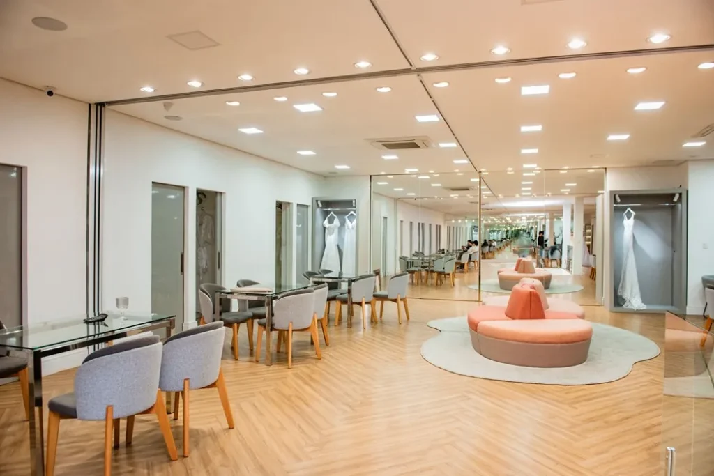 O atendimento é profundamente personalizado e consultivo, com sessões que, às vezes, duram cerca de duas horas. A equipe é multidisciplinar, composta por estilistas e consultoras de vendas que trabalham para decifrar os gostos e o perfil do evento de cada noiva. Mesmo que a cliente não saiba expressar suas preferências, o time é treinado para guiar a escolha, indicando o corte e o estilo que mais a valorizam. “O vestido de noiva é mais do que moda, é a realização de um sonho”, afirma a Juliana Milke, da área de Marketing do Center Noivas.