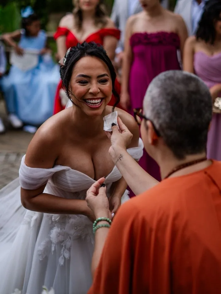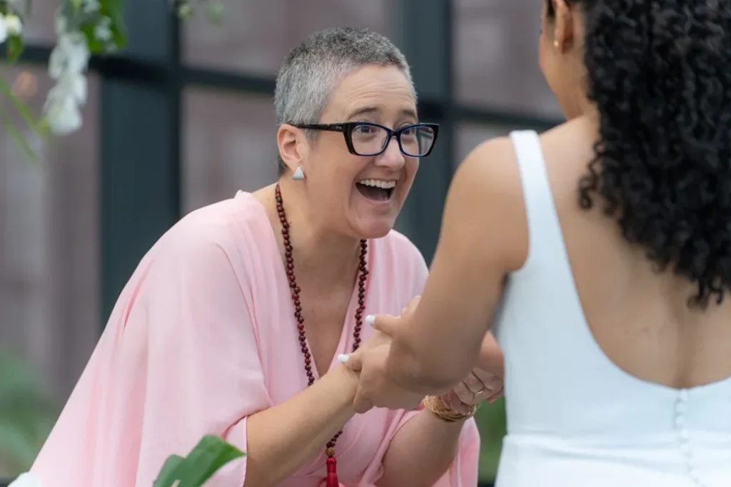 Para Fernanda, cada cerimônia é um convite à emoção e ao afeto. Fernanda descreve sua essência como um “borogodó” – algo que não se explica, mas se sente. Uma energia que transcende e conecta todos os presentes. É essa força invisível que transforma suas celebrações em experiências memoráveis, capazes de tocar profundamente quem participa. Em uma cerimônia, Fernanda surpreendeu ao cantar um trecho de uma música especial para os noivos. O vídeo viralizou e nasceu a “celebrante cantora”, uma marca registrada que hoje faz parte de suas celebrações. Cantar, para ela, é mais uma forma de traduzir o amor em emoção.