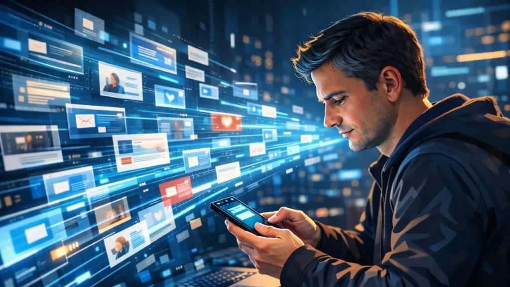 Em algum momento do dia, quase todos nós fazemos o mesmo gesto: pegamos o celular e rolamos a tela. Em poucos segundos, dezenas de conteúdos passam diante dos olhos. Vídeos, ofertas, opiniões, notícias, anúncios. Uma sequência infinita de mensagens disputando algo raro no mundo contemporâneo: atenção.