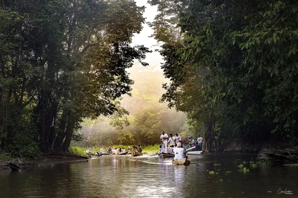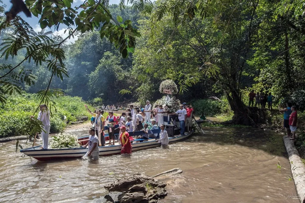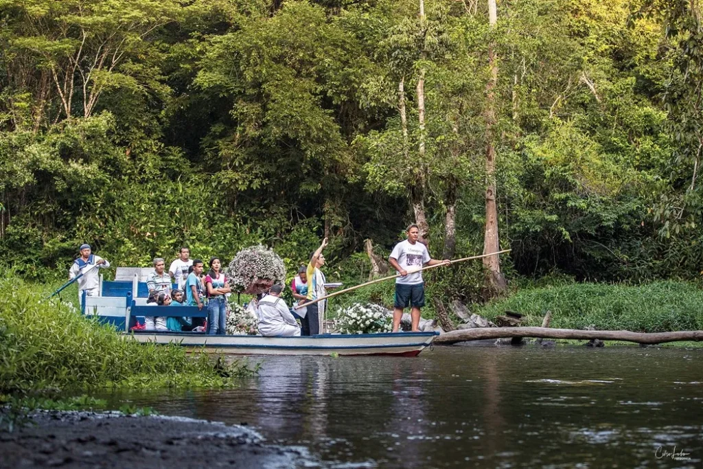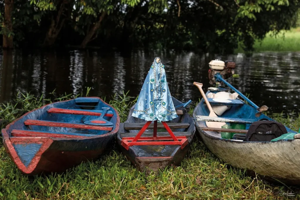 Caraparu e seus Encantos, belíssimo ensaio documental do fotógrafo transformado em livro com título homônimo, apresenta primorosamente cenas singulares, quase mágicas para o mundo contemporâneo: dezenas de canoas e barcos a remo adornados com flores e seus navegantes paramentados, em um lento cortejo fluvial dentro da floresta amazônica em celebração ao Círio das Águas de Caraparu, tradição que existe há mais de cem anos, herança de escravos que povoaram a graciosa vila turística de Caraparu localizada em Santa Izabel do Pará, município da região metropolitana de Belém conhecido como cidade dos igarapés. A festividade, um símbolo de identidade cultural local, traz um mosaico do imaginário de ritos religiosos católicos mesclados com elementos do cotidiano amazônico, com destaque para a floresta que flui com presença vital do rio e seus meios de transporte, canoas e barcos, em uma intrínseca vivência com seu potente mundo natural.