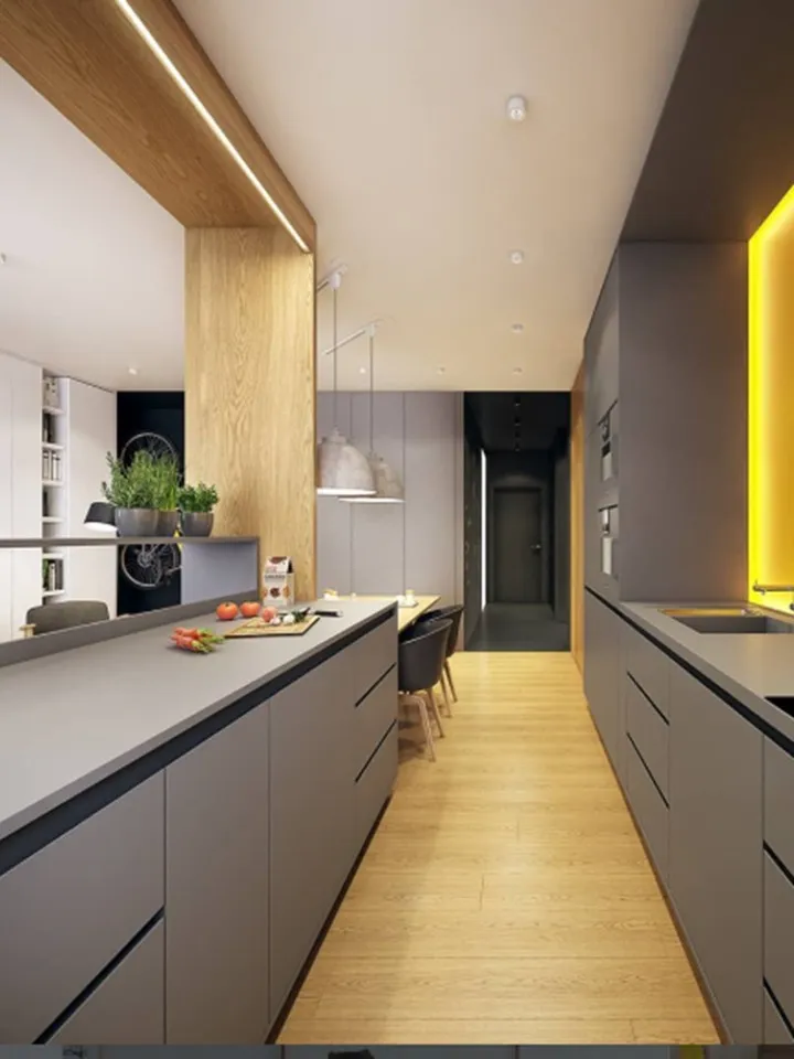 Paleta de cores e texturas: o uso de cores neutras, materiais naturais e diferentes texturas garante que o ambiente não pareça “frio”, mas sim acolhedor e sofisticado.